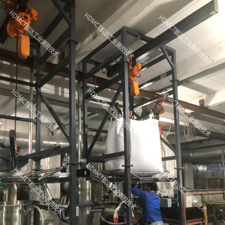 噸袋卸料站 通過叉車或者電動葫蘆提升噸袋至設備進料口,人工或自動拆開噸袋下料口,打開流量閥并輔以振動裝置促使噸袋內的粉粒狀物料依靠重力下落至貯斗中,從而完成拆包卸料工作。