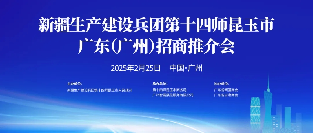 2月25日,由新疆生產(chǎn)建設(shè)兵團(tuán)第十四師昆玉市人民政府主辦,廣東省新疆商會(huì)、廣東省甘肅商會(huì)協(xié)辦,第十四師昆玉市商務(wù)局、智展展覽公司承辦的第十四師昆玉市廣東招商推介會(huì)在廣州成功舉辦。師市黨委副書(shū)記、師長(zhǎng),昆玉市人民政府黨組書(shū)記、市長(zhǎng)買買提艾力·吐?tīng)柡槌鱿⒅罗o。廣東省新疆商會(huì)、廣東省物流行業(yè)協(xié)會(huì)、廣州市食品行業(yè)協(xié)會(huì)、香港元城市愛(ài)心協(xié)會(huì)等單位、在粵商協(xié)會(huì)代表和各界企業(yè)家300余人齊聚一堂、暢敘合作情誼、共商發(fā)展大計(jì)。新疆維吾爾自治區(qū)駐廣州辦事處、新疆生產(chǎn)建設(shè)兵團(tuán)駐廣州辦事處、廣州市人民政府相關(guān)部門負(fù)責(zé)同志受邀出席會(huì)議,師市領(lǐng)導(dǎo)楊建玲、殷超及師市有關(guān)部門、團(tuán)場(chǎng)、國(guó)有企業(yè)負(fù)責(zé)同志參加推介會(huì)。
