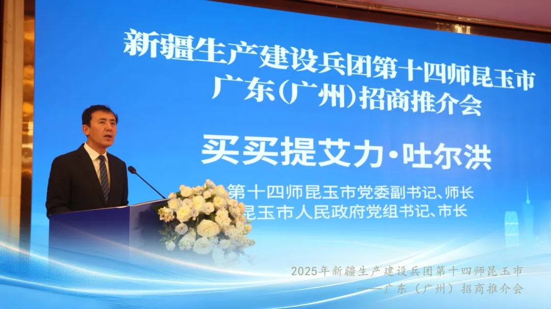 推介會(huì)上,買買提艾力·吐?tīng)柡樵敿?xì)介紹了第十四師昆玉市紅色精神之重、自然風(fēng)景之美、政策機(jī)遇之足、高效服務(wù)之暖、產(chǎn)業(yè)發(fā)展之需,彰顯了師市“海納百川、廣交朋友,融商聚力、合作共贏”的招商理念,表達(dá)了師市“招商為要、項(xiàng)目為王、產(chǎn)業(yè)為基”推動(dòng)高質(zhì)量發(fā)展的堅(jiān)定信心,展現(xiàn)了持續(xù)擦亮昆玉“四最四心”營(yíng)商環(huán)境品牌的堅(jiān)強(qiáng)決心,承諾拿出最好政策、最高禮遇、最優(yōu)資源、最佳服務(wù),誠(chéng)邀各位企業(yè)家到這片熱土施展抱負(fù)、落地發(fā)展、投資興業(yè),讓廣東智慧在祖國(guó)邊陲綻放異彩,讓粵昆兩地?cái)y手共創(chuàng)更加美好的明天。